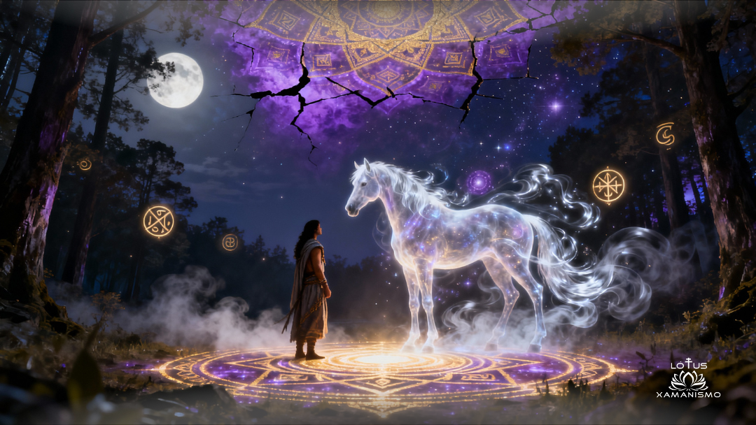 O Cavalo é o primeiro grande locomotor da alma. Ele não apenas leva corpo e espírito — ele inaugura caminhos. Nas tradições xamânicas, é conhecido como o condutor seguro que atravessa mundos, carregando o iniciado para além dos limites do ego, além das barreiras da mente, além das fronteiras do medo.