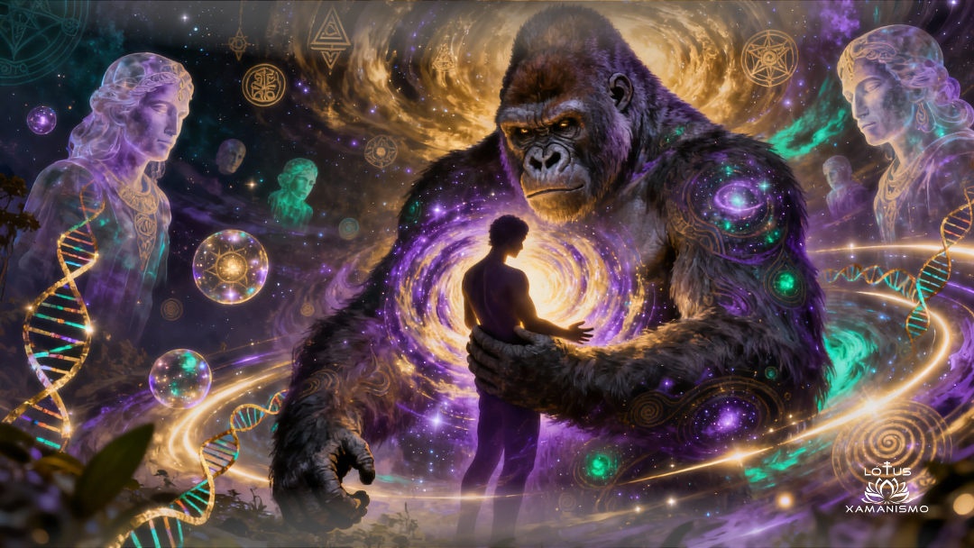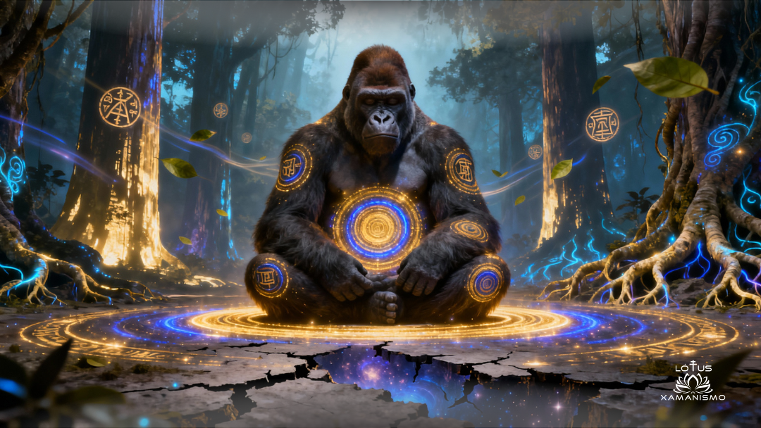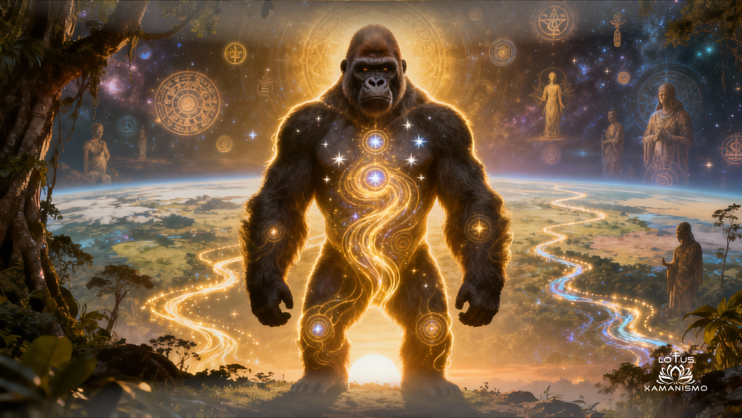 O gorila permanece como aquele que guarda a porta do Self, velando para que você nunca mais se esqueça de quem é, de onde veio e da imensidão ancestral que carrega nos músculos da alma.
