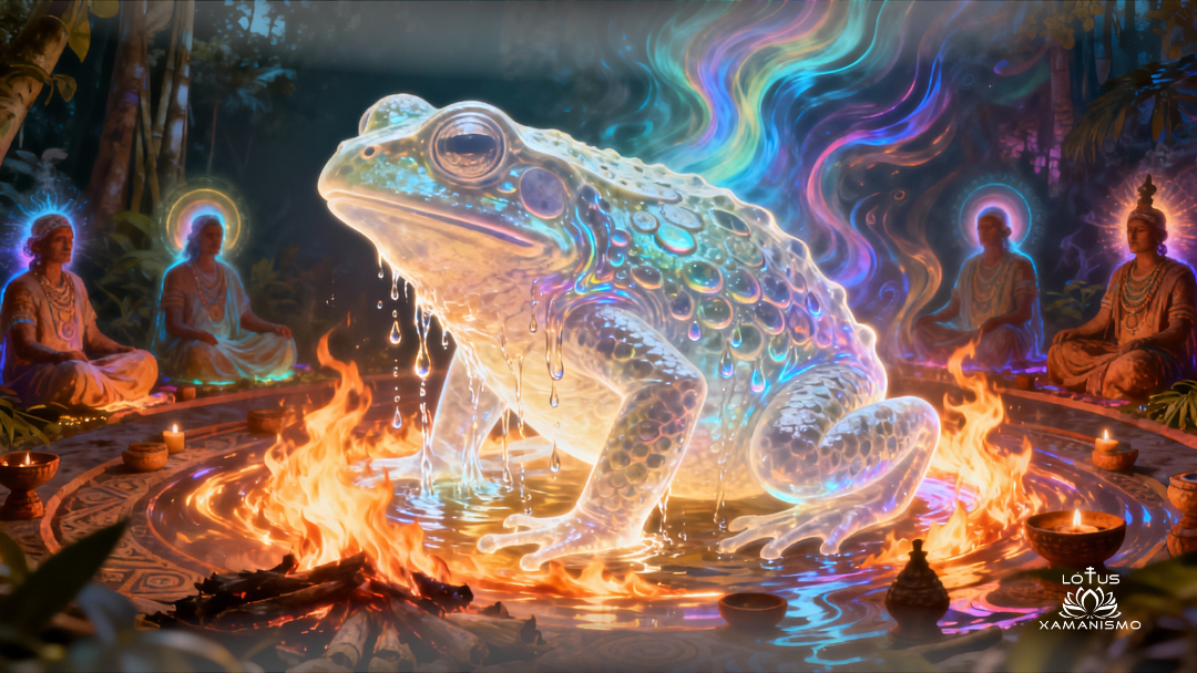 Há tempos que o Sapo habita as margens de nossas cerimônias. Não como visitante ocasional, mas como presença ancestral que sempre esteve ali, respirando na umidade da noite, sussurrando em frequências que só os iniciados conseguem ouvir. Desde os primeiros trabalhos na Chácara Vida, passando pelo Jardim Dourado, ele permaneceu – quase desapercebido, como fazem os verdadeiros guardiões. Silencioso. Observador. Transmutador.